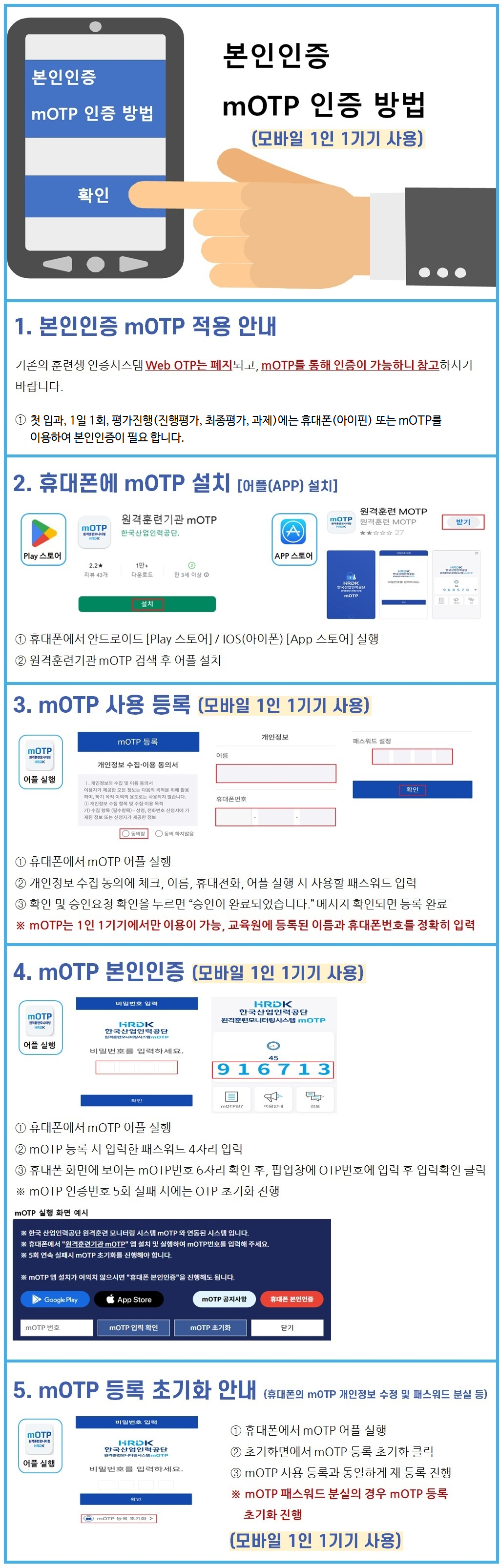 본인인증 mOTP 적용 및 인증 방법 안내 (모바일 1인 1기기 사용)